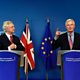 Britain's Secretary of State for Exiting the European Union David Davis (L) and European Union's French chief Brexit negotiator Michel Barnier address a joint press conference at the European Commission in Brussels on June 19, 2017, as Britain starts formal talks to leave the EU.