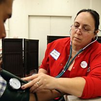 (Photo: Healthcare worker taking blood pressure. Credit: Getty Images)