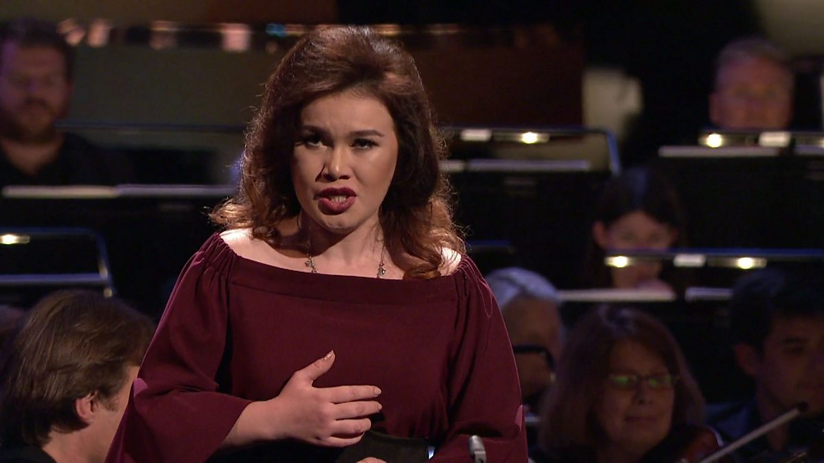 Soprano Barnokhon Ismatullaeva sings Dich, teure Halle by Wagner in round four of Cardiff Singer of the World, 2017.