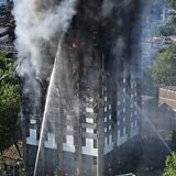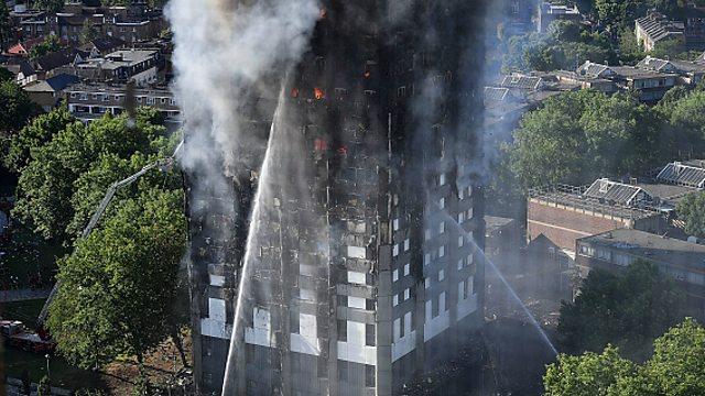 (Photo: Fire fighters tackle the building after a huge fire engulfed the 24 storey residential Grenfell Tower block in West London in the early hours of June 14, 2017; Credit: Leon Neal/Getty Images News)