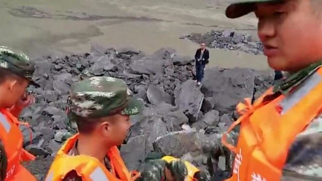 Rescuers in south-west China are searching for up to a hundred people feared to have been buried in their homes by a huge landslide. We get the latest from our correspondent. ; The Iraqi military say they will have recaptured most of Mosul within days; Woodworms the latest weapon in helping to preserve stately homes. (Photo: Chinese rescuers at work in Sichuan province; Credit: BBC Website)