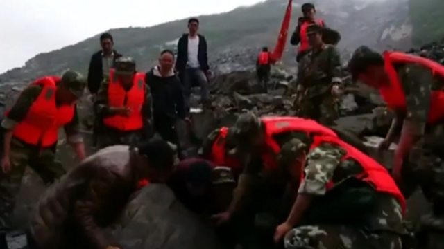 Rescuers in south-west China are searching for up to a hundred people feared to have been buried in their homes by a huge landslide. We get the latest from our correspondent.
