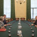 Picture: The British Prime Minister, Theresa May, hosts the head of the Democratic Unionist Party, Arlene Foster, in Downing Street, Credit: Getty Images
