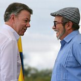 (Photo: Colombian President Juan Manuel Santos (L) and Farc's top leader, Rodrigo Londono (R), alias "Timochenko". Credit: European Photopress Agency)