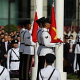 (Photo: The Chinese and Hong Kong flags are raised during a ceremony in Hong Kong on July 1, 2017. Credit: Getty Images)