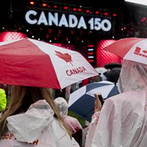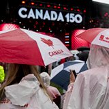 (Photo: Thousands of people gather in the heavy rain to celebrate Canada's 150th birthday in Ottawa on July 1, 2017. Credit: Chris Roussakis/AFP/Getty Images)