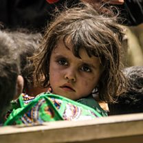 (Image: Iraqi children, who fled the fighting between government forces and Islamic State (IS) group jihadists in the Old City of Mosul, sit in a vehicle in the city's western industrial district, waiting to be relocated, on 8th July 2017. Credit: Fadel Senna/AFP/Getty Images)