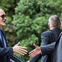 (Photo: Syrian chief negotiator a Bashar al-Jaafari is welcomed by a UN official upon his arrival for peace talks in Geneva. Credit: Getty/AFP)