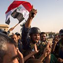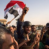 (Photo: Iraq's federal police members wave the national flag in OId Mosul. Credit: AFP)