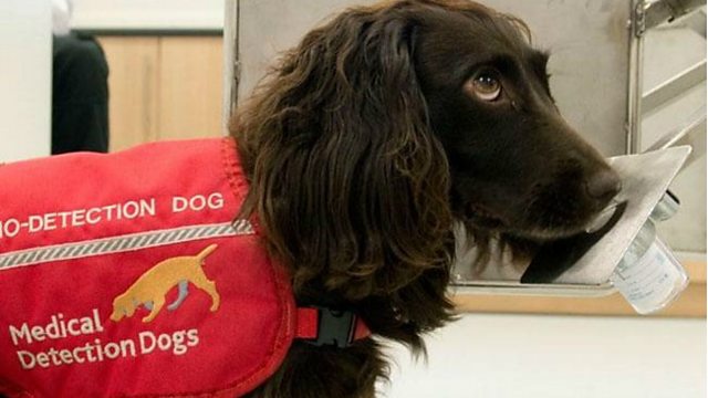 (Photo: A dog being trained to sniff out Parkinson's disease. Credit: Medical Detection Dogs)