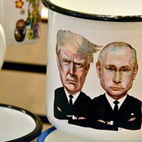 Picture: A mug on sale in Moscow displays the faces of Presidents Trump and Putin. Credit: AFP/Getty Images.