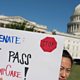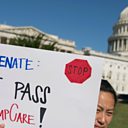 (Image: A protester against the Republicans' healthcare bill holding a sign that reads "Don't Pass #Trumpcare" . Credit: Saul Loeb/AFP/Getty)