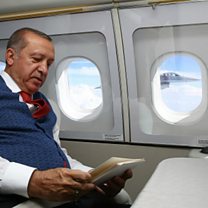 (Image: President of Turkey Recep Tayyip Erdogan on board his official plane. Credit: Getty Images)