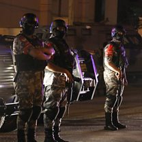 (Photograph shows Jordanian security forces standing outside the Israel embassy in Amman. Credit: European Photopress Agency)