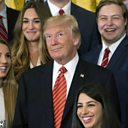 Picture: U.S. President Donald J. Trump poses for photographs with an outgoing group of interns at The White House