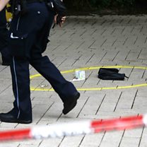 (Photo: A police officer walks past the crime scene after a knife attack in a supermarket in Hamburg, Germany.