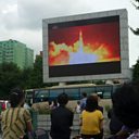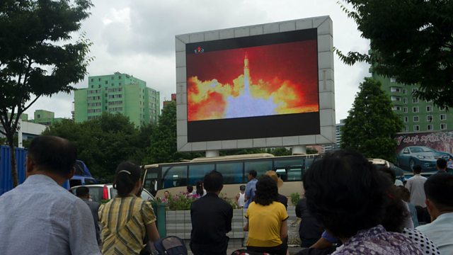 (Picture: People watch as coverage of an ICBM missile test is displayed on a screen in a public square in Pyongyang. Credit: AFP)