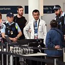 (Image: Police help screen passengers at Sydney Airport. Credit: Getty Images)