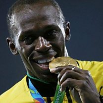 (Photo: Usain Bolt with gold medal. Credit: Getty Images)