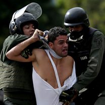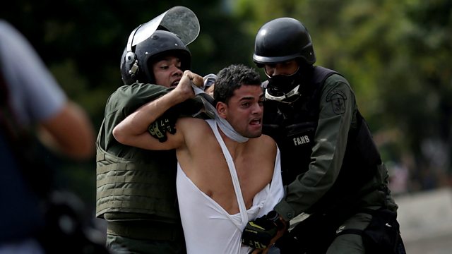 Also, President Trump approves new sanctions against Russia, and scientists warn about deadly impact of climate-change in South Asia. (Photo: Demonstrator detained by police during anti-government rally in Caracas, Venezuela. Credit: Reuters/Ueslei Marcelino)