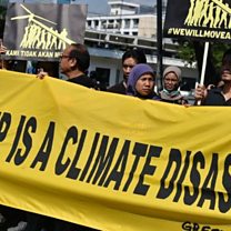 (Photo: Climate change activists condemn Donald Trump. Credit: Getty Images)