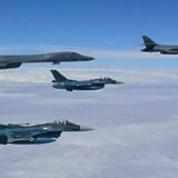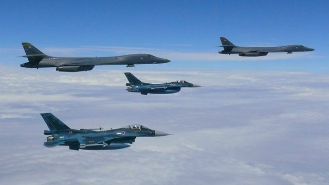 ( Picture: US Air Force bombers escort Japanese fighter jets near Japan.