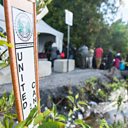 Picture: A long line of asylum seekers wait to illegally cross the Canada/US border near Champlain, New York