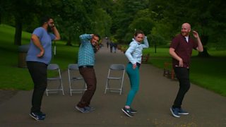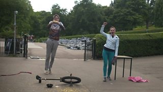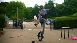 Unicycle skills with Sam Goodburn and bhangra dancing with Ray Bradshaw and Eshaan Akbar.