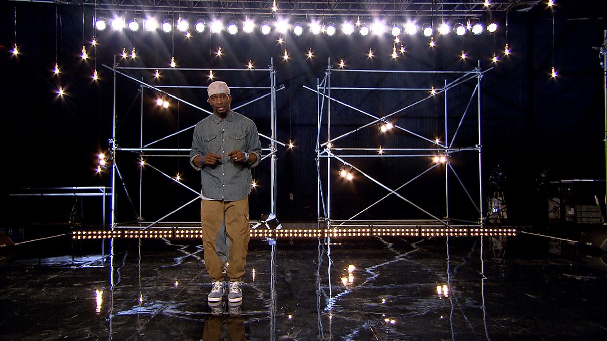 Kenrick ‘H20’ Sandy from 'Alesha's Street Dance Stars' teaches the 'KB hop' as used in street dance. Kenrick begins by demonstrating the move slowly without music and with clear directions. The focus is on the lower body but he discusses being free with the hands, having fun and letting go. The music is then added and he performs the move to the beat.