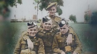 A photo of four of the MacLachlan brothers. Kenneth, Malcolm and Ian (l – r front row), and Finlay senior (back row). Malcolm and Ian died on the battlefield at El Alamein and Finlay senior spent several years in a POW camp