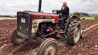 Charlie speaks to Jim, who's part of a team which helps keep a steam plough running.