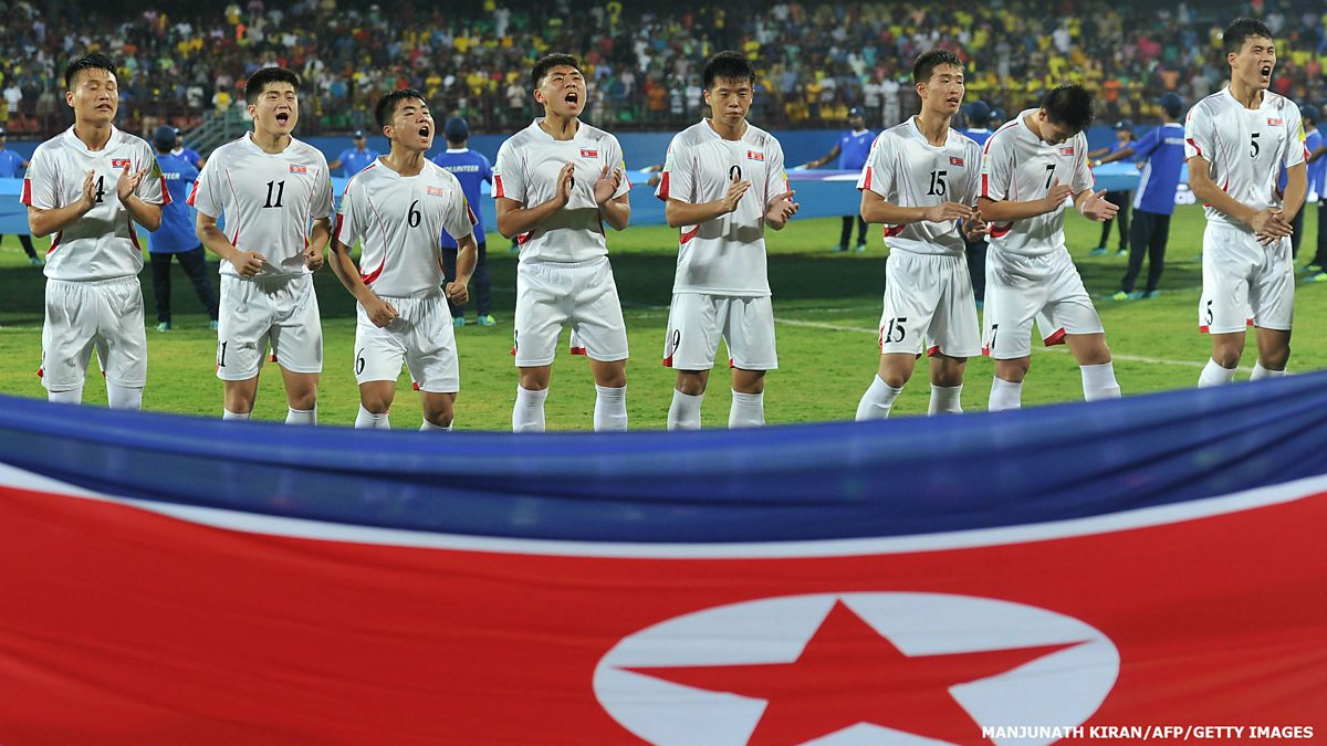 (Photo: Football players of North Korea applaud after their national anthem prior to the group stage football match between North Korea and Niger in the FIFA U-17 World Cup in Kochi on October 7, 2017, Credit: MANJUNATH KIRAN/AFP/Getty Images)