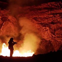 The German photographer Ulla Lohmann takes studying volcanoes to the extreme: she lowers herself into active volcanoes to take pictures.
