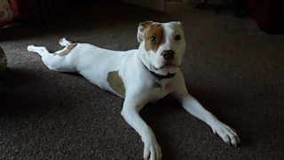 Marley likes going for walks, eating dog biscuits and doing tricks.