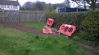 The family with three young children unable to enjoy their garden because of a broken pipe. With water lying outside the back door nearly reaching the boiler house they'd been trying for 6 months to get NI Water to fix it.