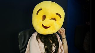 Will Emily manage to correctly guess who's behind the winking emoji in front of her?