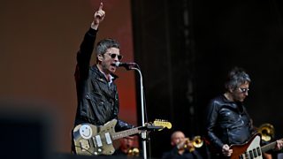 Noel inspires the festival's biggest singalong with Oasis song Don't Look Back In Anger.