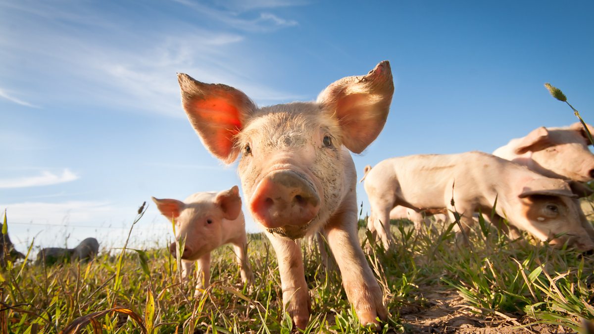 Sean Coyle watches pigs jostle for best position at a scratching post.