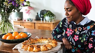 Nadiya Hussain makes her family favourite breakfast; ham and cheese crown - perfect for a king or queen!