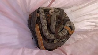 Inspector Trevor Walker says the pythons and corn snakes were found in pillow cases.