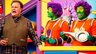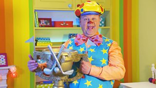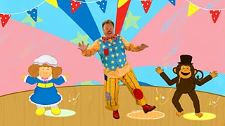 Justin and his friends are having fun dancing, while Mr Tumble is outside getting sporty!