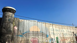 Mae Ffion Dafis yn ymweld ag un o ffiniau mwya' dadleuol y byd - y wal sy'n gwahanu Isr...