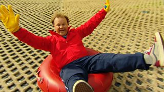 Justin and his friends are having fun snow tubing, while Mr Tumble is trying to cool down.