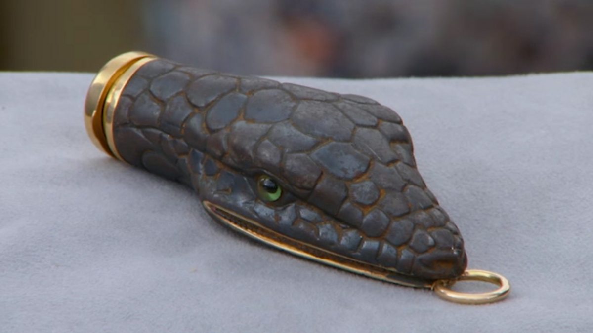 Ronnie Archer Morgan is dazzled by a pillbox designed to look like the head of a snake.