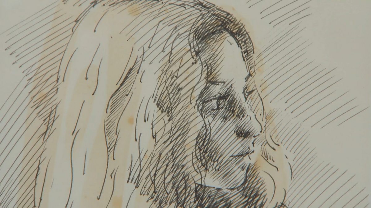 Lawrence Hendra admires a sketch by Harold Riley and his innovative use of fizzy pop