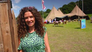 Nia Roberts a'r criw sy'n ein harwain o'r Babell Len ac at lwyfan y pafiliwn i gystadla...