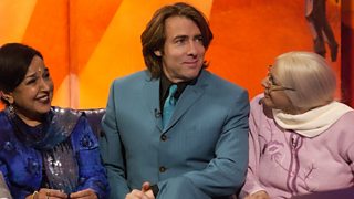 2/9Robson Green and Lulu face a grilling on the Kumars' sofa.