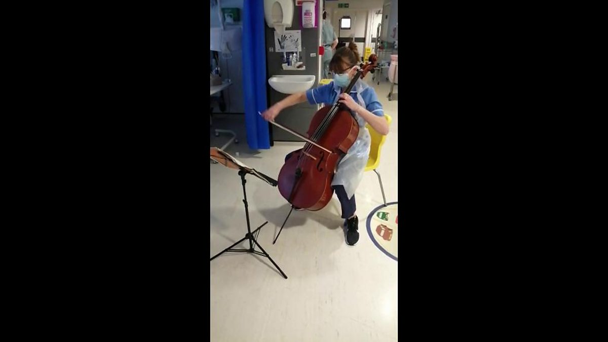 Paediatric nurse Natasha plays cello for the COVID-19 ward of St Mary's Hospital, London.