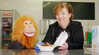 Mae Gareth yr Orangutan yn falch o gyflwyno ei raglen deledu gyntaf, yn sgwrsio gyda se...