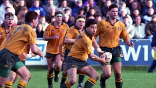 Blwyddyn ar ôl ennill Cwpan y Byd, daeth Awstralia ar daith i Gymru - cyn-fewnwr Aberta...